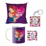 Giftsmate Mother's day Gifts for Mom – Love You Mom Gift Combo Hamper Set of 4 – Mug, Coaster,Keychain, Cushion Cover 12×12