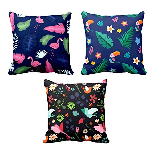 TheYaYaCafe 12X12 Inches Set of 3 Cushion Covers Grand Alluring Floral Flowers Printed Sofa Throw Pillows Multicolor