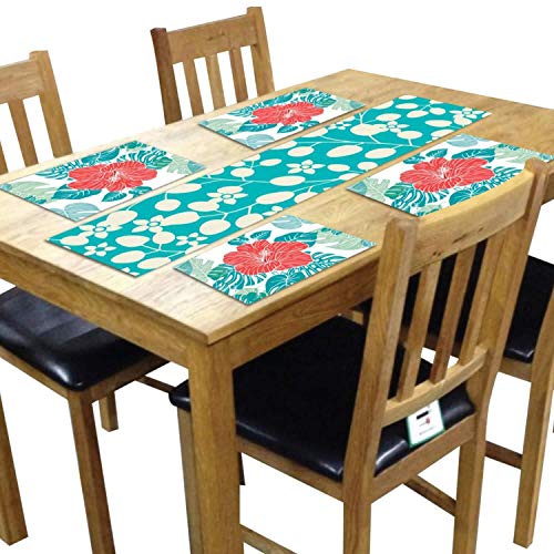 TheYaYaCafe 4 Table Mats And Runner Set For Dining Table (1 Table Runner Leatherite 12X48 Inches, 4 Cotton Table Placemats) Floral Flower Stunning Well-Formed Printed