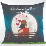 TheYaYaCafe Canvas Cotton Lets Dream Together Under Stars Throw Cushion Cover (16 x 16 inches, Blue)