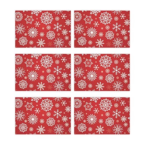 TheYaYaCafe Christmas Decorations Table Place Mats Cloth Cover Snowflake – 6 Mats