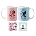 YaYa cafe The Best Mom Dad in The World Mug, Coaster Combo -Combo Set of 2