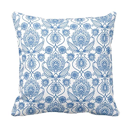 TheYaYaCafe Yaya Cafe Elegant Indigo Printed Canvas Cotton Cushion Cover for Home Sofa, 24 x 24 inch, Blue