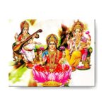 Yaya Cafe™ 12×18 inches Invincible Laxmi Ganesh Saraswati Idol Modern Art Wall Hanging Paintings Canvas Photoframe