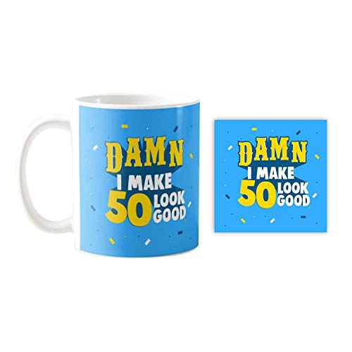 Yaya Cafe 50th Birthday Gifts Damn I Make 50 Look Good Printed Ceramic Coffee Mug with Coasters