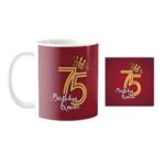 Yaya Cafe 75th Birthday Gifts, 75th Birthday Queen Printed Ceramic Coffee Mug with Coasters (330 ml)