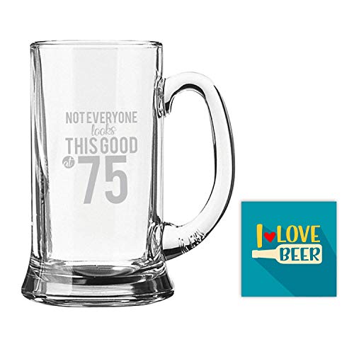 Yaya Cafe 75th Birthday Gifts, Not Everyone Look This Good at 75 Engraved Beer Mug for Men – Playboy Beer 357 ml