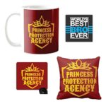 Yaya Cafe Birthday Gifts Combo for Brother, Princess Protection Agency Mug, Coaster, Mousepad, Cushion Cover, Set of 4