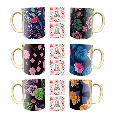 Yaya Cafe Captivating Floral Flower Handmade Ceramic Coffee Mug Set of 6 with Coaster (325 ml)