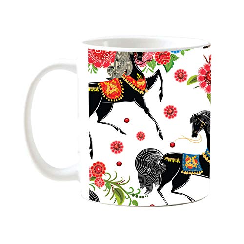 Yaya Cafe Good-Looking Horse Floral Flower Ceramic Coffee Mug 325 ml