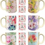 TheYaYaCafe Classy Floral Flower Ceramic Coffee Mug Set of 6 with Coaster (325 ml)