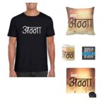 Yaya Cafe Men's Cotton Combo of Bhratashree Round Neck T-Shirt, Mug, Coaster, Cushion Cover, Mousepad L (Set of 5, Black)