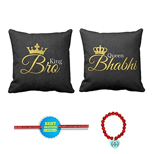 Yaya Cafe Rakhi Gifts King Bro Queen Bhabhi Printed Cushion Cover 16 x 16 inches Set of 2