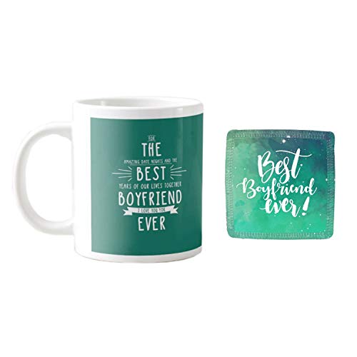 Yaya Cafe Valentines Day Gift for Wife Best Boyfriend Love You Forever Printed Ceramic Coffee Mug 325 ml with Cotton Cushion Covers 12 x 12 inches