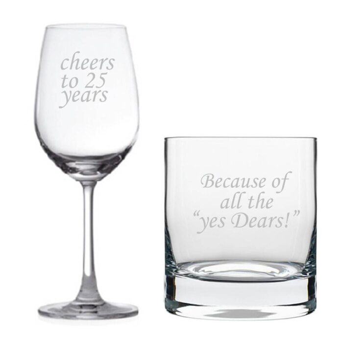 Celebrate love and companionship with our exclusive Cheers 25th Anniversary Whiskey and Wine Glass Set of 2. A popular gift idea from our exhaustive range of couple gifts, this one is to cherish all their life!