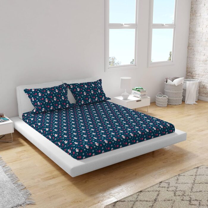 Enhance your bedroom décor with TheYaYaCafe’s luxurious Double Bed Velvet Bedding Set, featuring a festive Green Christmas Pattern that adds a touch of elegance to your space. This 3-piece set includes 1 double bedsheet and 2 matching pillow covers, designed for both comfort and durability with high-strength microfiber velvet that resists wrinkles and stays soft over time. With a 200-thread count, this bedding provides an ultra-smooth finish, while the modern printed design maintains vibrant colors thanks to eco-friendly, BPA-free digital printing. Made in India, TheYaYaCafe’s bedding set combines style, sustainability, and superior craftsmanship to deliver a beautifully designed set that elevates your sleep experience. Please note, slight color variations may occur due to lighting and display settings.