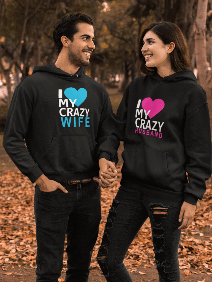 Express your love and craziness for your love in a truly special way with our I Love My Crazy Husband And Wife Couple Sweatshirts. The pack contains 2 Sweatshirts