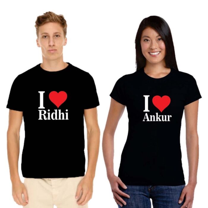 Personalized I Love Couple t-shirts can be personalized with the names of the couple and the matching couple shirts are a great gift idea for the just married couples and for honeymoon.