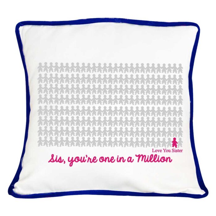 Gift your sister this Personalized One In A Million Sister Cushion Cover on her birthday or as Rakhi Gift for sister.