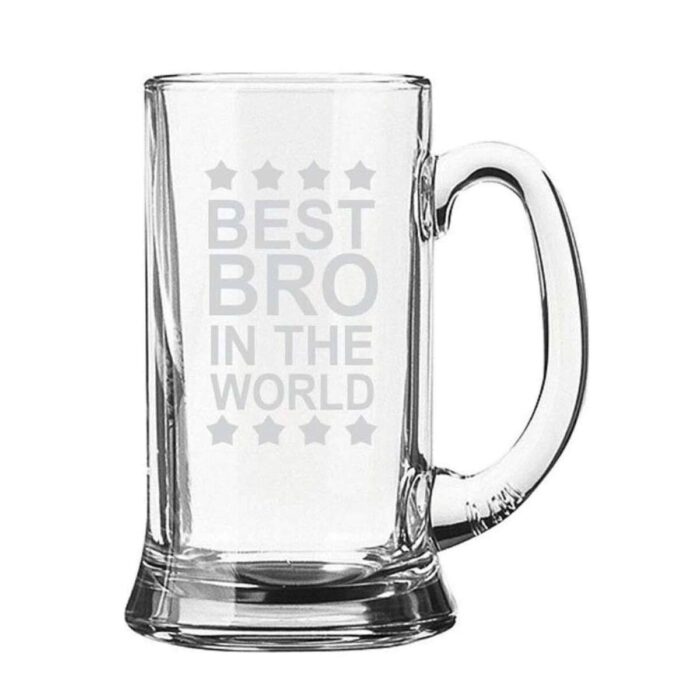 This Engraved Best Bro Beer Mug will be a delightful addition to your Brother’s repertoire of glassware items. This comes in a transparent color and is dishwasher compatible too!