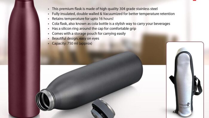 – This premium flask is made of high quality 304 grade stainless steel – Fully insulated, double walled and Vacuumized for better temperature retention – Retains temperature for upto 16 hours! – Cola flask, also known as cola bottle is a stylish way to carry your beverages – Has a silicon ring…