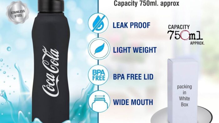 – Single wall Stainless steel bottle – Wide mouth can fit ice cubes easily – Leak proof cap construction – Cap plastic is food safe and BPA free – Comes packed in White gift box – Capacity: 750ml approx – Color: Black Custom colors can be made on request