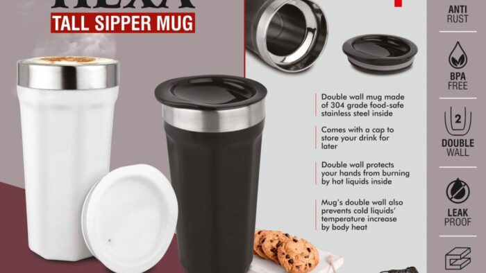 – High quality stainless steel double wall mug – Mirror finish stainless steel inside for longer life – Made of food safe 304 grade stainless steel – Double wall protects your hands from burning by hot liquids inside – Mug’s double wall also prevents cold liquids’ temperature increase by body…