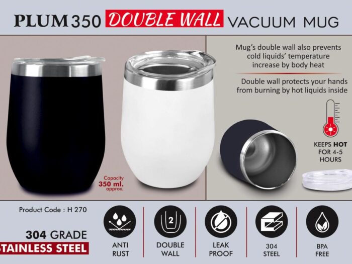 – Double wall vacuum mug – Air-tight lid prevents spillage – Made of 304 grade steel – Vacuumized design keeps the beverage warm for 4 to 5 hrs – Double wall protects your hands from burning by hot liquids inside – Capacity 350 ml (approx.)