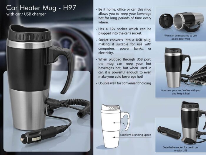 – Now take your tea / coffee with you and keep it hot! – Be it home, office or car, this mug allows you to keep your beverage hot for long periods of time everywhere. – Has a 12v socket which can be plugged into the car’s socket. – Socket converts into a USB plug, making it suitable for use with…