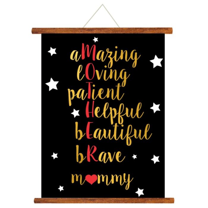 Starry Beautiful Mommy Mother Definition Canvas Scroll are from our wide collection of mothers day Scroll greeting cards for mom and are perfect for conveying a message for occasions such as Birthdays, Mother’s day. The birthday cards for mom are beautiful, unique and elegant mothers day greetings. Each happy mothers day scroll card is handcrafted with the utmost care and attention to detail and will not fail to impress. The product is designed with a special wood lustre with wooden supports at top & bottom and handcrafted jute thread to give it a traditional yet modern feel.