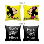 Gift this Cute His Hers Mickey Minnie Couple Cushion Covers- Set of 2 to your spouse, fiance, girlfriend, boyfriend and add the huddle and cuddle touch to your relationship everyday.