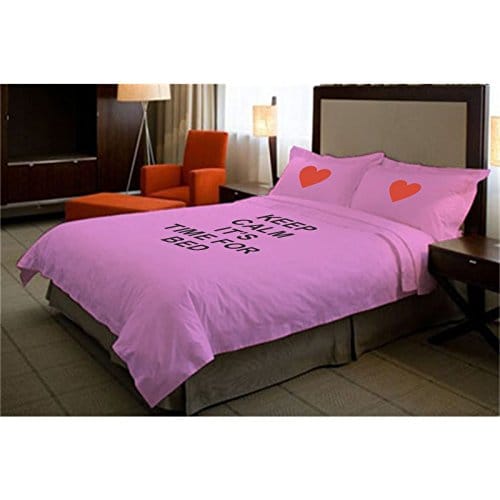 Description: This Keep Calm Its Bed Time bed sheet will add a personal touch to your room decor and would be a perfect Romantic couple bedsheets.