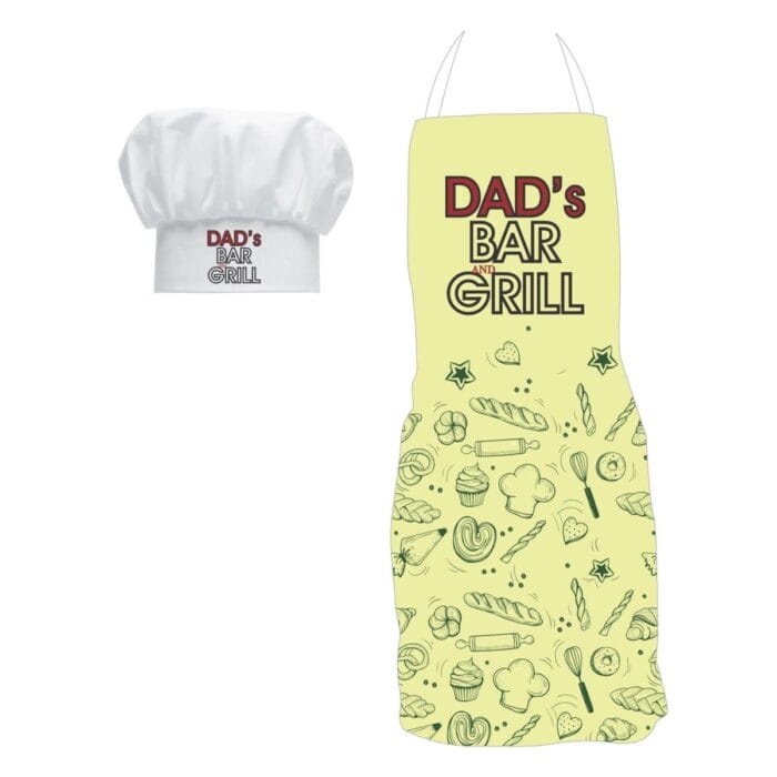 Our Dads Bar n Grill Apron from our special collection of aprons for dads is a beautiful present for papa on his birthday and as father’s day gifts. A beautiful gift for the kitchen king dads.