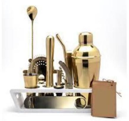 GOLDEN BAR SET WITH WOODEN BLACK BASE WITH COPPER ACCESSORIES
